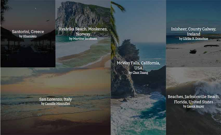 <article class="card"> <figure> <img width="IMG_WIDTH" height="IMG_HEIGHT" src="IMG_URL" alt=""> <figcaption> <div> ... <span> by <a href="UNSPLASH_URL" target="_blank">...</a> </span> </div> </figcaption> </figure> </article>